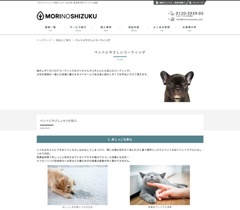 ペットが舐めても安全な天然素材を使用した塗料や、引っかき傷、おしっこなどのシミや変色、臭いを保護する機能性の高いものがあります。